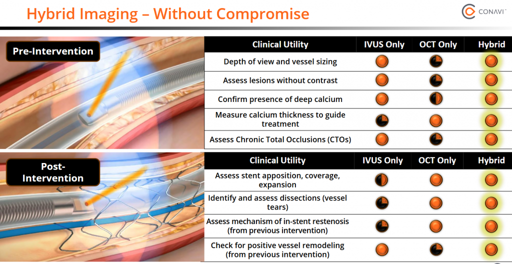 Conavi’s Novasight hybrid system lets surgeons use IVUS to plan interventions and OCT to fine-tune results, like spotting issues after stent placement. Clinical data from 2021 showed it reduced risks like target vessel failure compared to older imaging methods, making it a standout for complex procedures. “Source: Ma, T., et al. (2021). Multi-modality intravascular imaging for guiding coronary intervention and assessing coronary atheroma: the Novasight Hybrid IVUS-OCT system. ResearchGate”